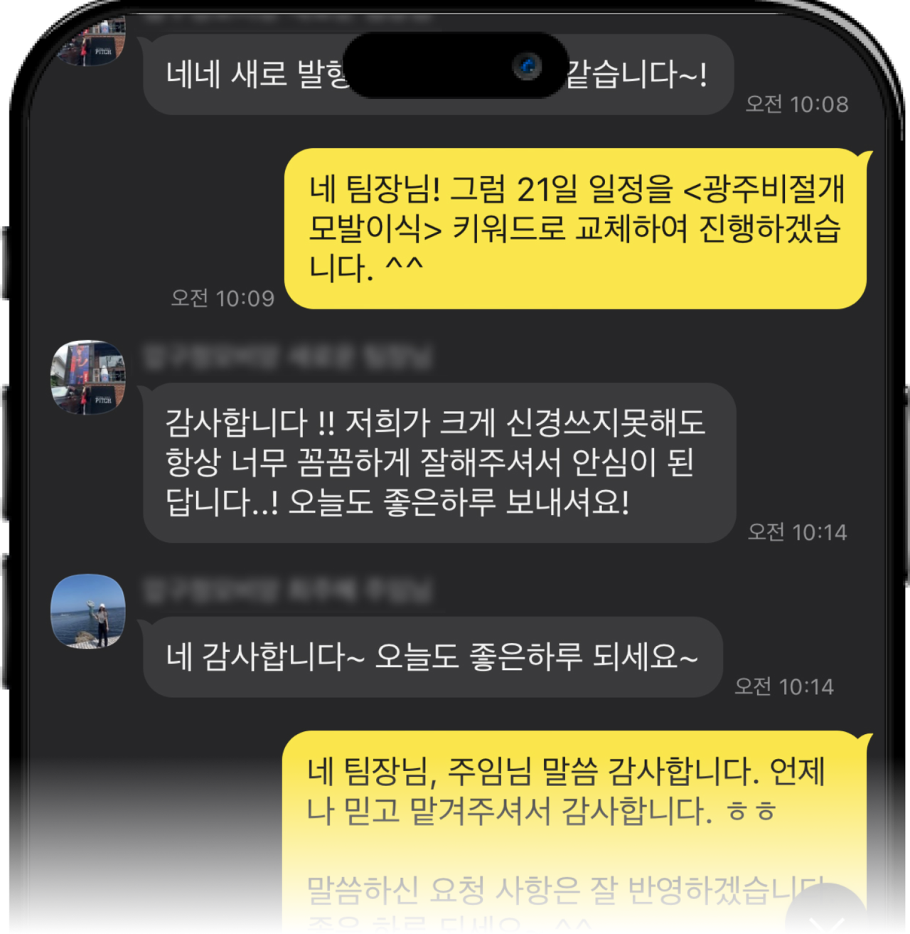 실제 카카오톡 대화 내용 중
